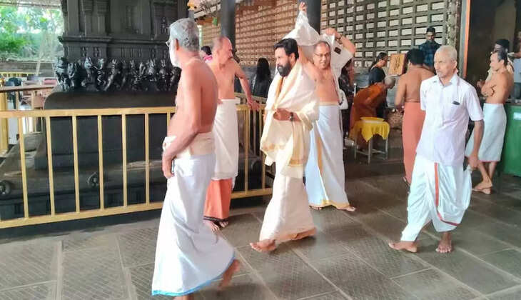 നടൻ ദിലീപ് തളിപ്പറമ്പ് രാജരാജേശ്വര ക്ഷേത്രത്തിൽ ദർശനം നടത്തി; പൊന്നുംകുടം സമർപ്പിച്ചു