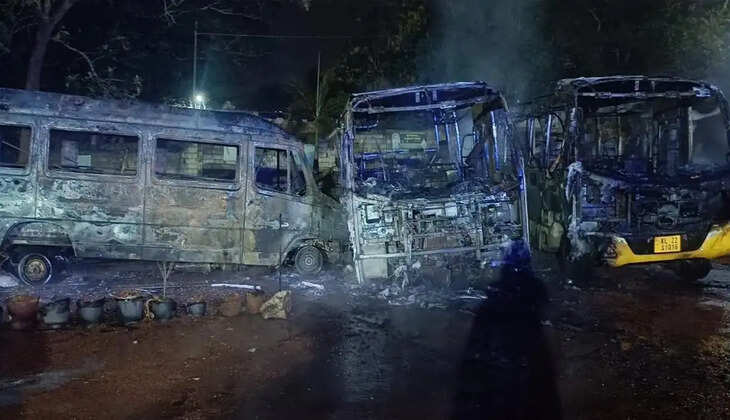 സ്കൂൾ ബസുകൾക്ക് മനപ്പൂർവം ആരോ തീയിട്ടതെന്ന് സംശയം; സിസിടിവി ദൃശ്യങ്ങളടക്കം പരിശോധിച്ച് പോലീസ്