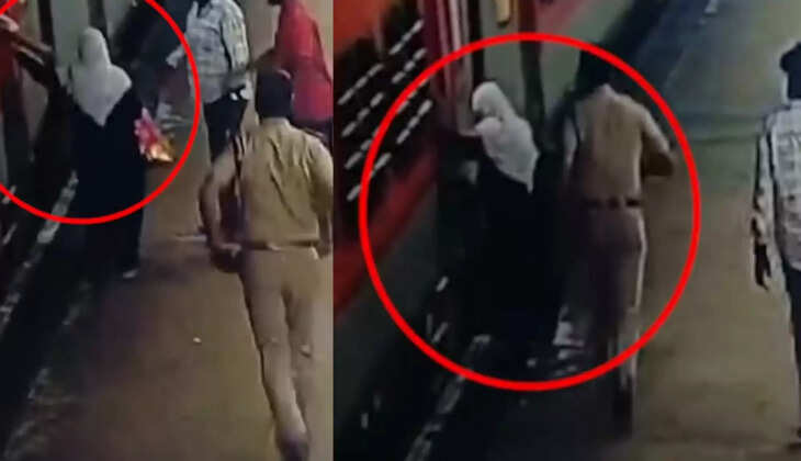 അപകടം മുൻകൂട്ടി മനസ്സിലാക്കി ഓടുന്ന ട്രെയിനില് കയറുന്നതിനിടെ കൈപ്പിടി വിട്ട് പ്ലാറ്റ്ഫോമിലേക്ക് വീണ സ്ത്രീക്ക് രക്ഷകനായി പൊലീസ്