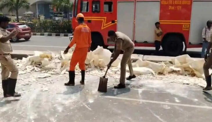 ദേശീയപാതയിൽ ലുലുമാളിന് എതിർവശം നിർമാണത്തിലിരിക്കുന്ന കെട്ടിടത്തിന് സമീപമാണ് അപകടം. കണ്ടെയ്നറിനുള്ളിൽ അട്ടിമറിഞ്ഞ ജിപ്സത്തിനിടയിൽ തൊഴിലാളികൾ കുടുങ്ങുകയായിരുന്നു.