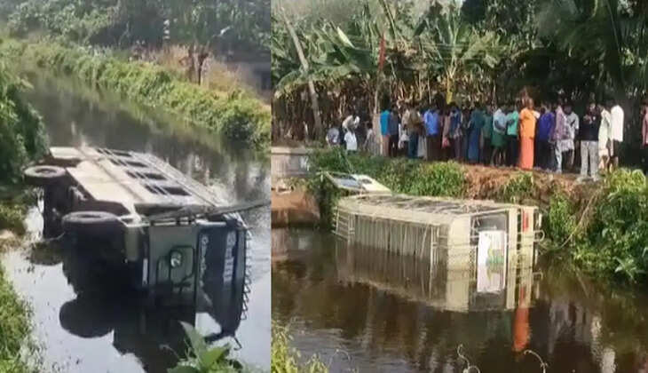 തിരുവനന്തപുരം വണ്ടിത്തടത്ത് സ്കൂൾ വാഹനം തോട്ടിലേക്ക് മറിഞ്ഞു; 21 കുട്ടികൾക്ക് പരുക്ക്