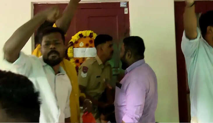 ആരോഗ്യമന്ത്രിയുടെ വീട്ടിലേക്ക് അതിക്രമിച്ചു കയറി യൂത്ത് കോൺഗ്രസ് പ്രവർത്തകർ; വാതിലിൽ റീത്ത് വെച്ചു