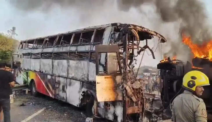 ആന്ധ്രയിൽ ബസും ടിപ്പർ ലോറിയും കൂട്ടിയിടിച്ച് ബസിന് തീപിടിച്ചു; 12 പേർക്ക് ദാരുണാന്ത്യം