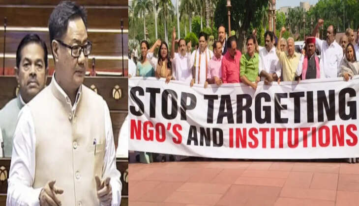 എൻജിഒകളെയും സ്ഥാപനങ്ങളെയും ലക്ഷ്യം വെയ്ക്കുന്നത് അവസാനിപ്പിക്കുക എന്ന മുദ്രാവാക്യമുയർത്തിയാണ് പ്രതിപക്ഷം പ്രതിഷേധം സംഘടിപ്പിച്ചത്. പാർലമെന്റ് കവാടത്തിന് മുൻപിലാണ് ബാനർ ഉയർത്തി പ്രതിഷേധം സംഘടിപ്പിച്ചത്. ലോക്സഭയിൽ കിരൺ റിജിജു പ്രസംഗിക്കുമ്പോഴും പ്രതിപക്ഷ പ്രതിഷേധം ഉണ്ടായി. ഭേദഗതിയിൽ തെറ്റിദ്ധാരണ ഉണ്ടാക്കുന്നുവെന്നും കോണ്ഗ്രസും ഇടതുപക്ഷവുമാണ് കേരളത്തിലെ ജനങ്ങളെ തെറ്റിദ്ധരിപ്പിക്കുന്നതെന്നും കിരൺ റിജിജു പറഞ്ഞു. ബില് വിദേശപണത്തിന്റെ ഒഴുക്ക് നിയന്ത്രിക്കാനാണെന്നും കിരൺ റിജിജു കൂട്ടിച്ചേർത്തു.